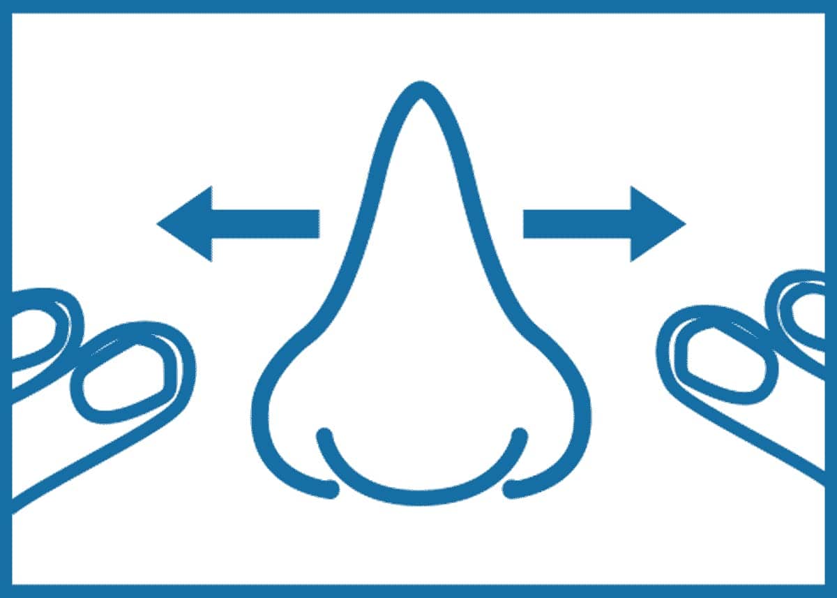 Gently press and pull outward to further open your nasal passage. While holding, breathe through your nose.